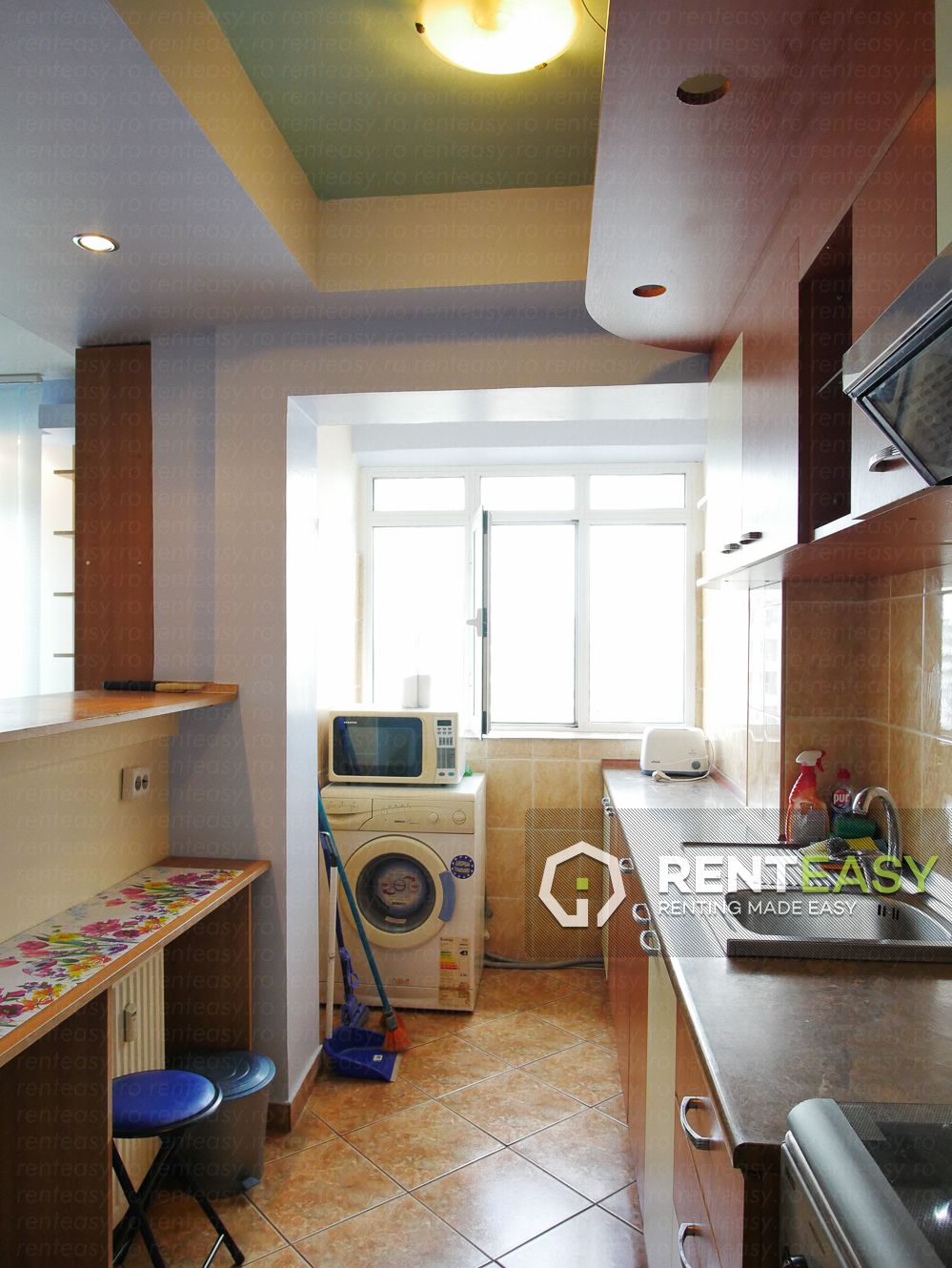 We can offer you this flat that has 50 square meters in exchange of a rent for 350 euros / month. It is located in a downtown area of Iasi - Central Hall and if you decide tobe tenants, you will have acces to: stove, hood, microwave, refrigerator, television, air conditioning in both rooms. In living awaits a sofa in the bedroom and a double bed, ready to host your dreams.