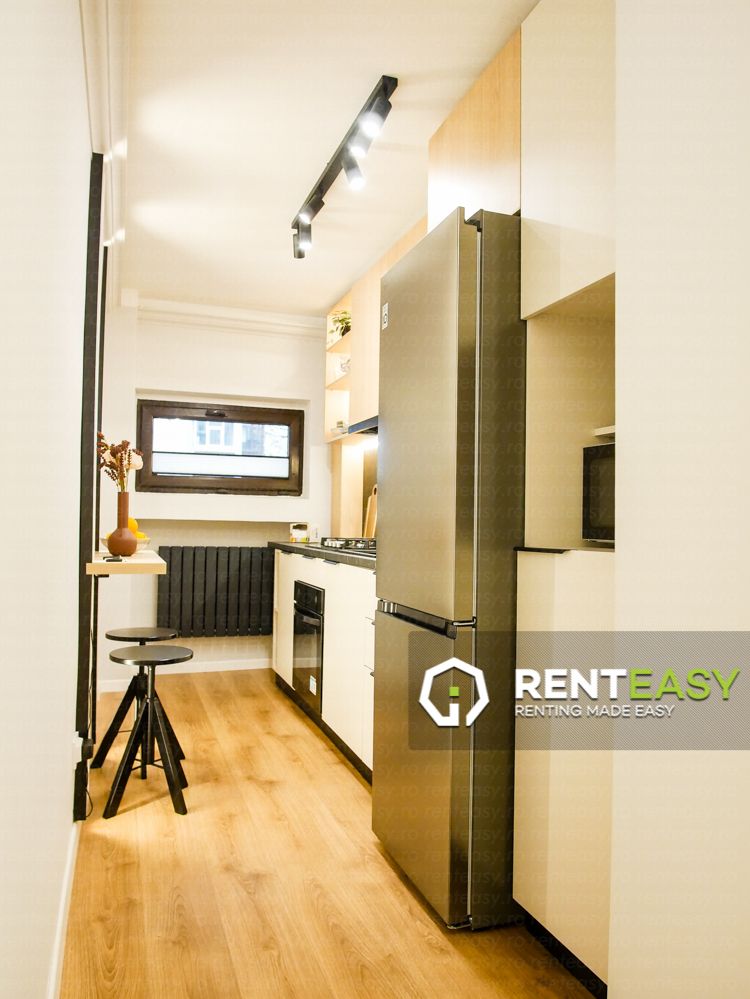 Apartment for rent, with 1 living room and one bedroom, 2 balconies, kitchen, lobby and bathroom. The apartment has been recently renovated, has new and modern furniture and new eqquipment, air conditioning, own heating system. Only 2 minutes walk to UMF, the flat is great for medicine students and can be rented for the price of 900 Euro/month.