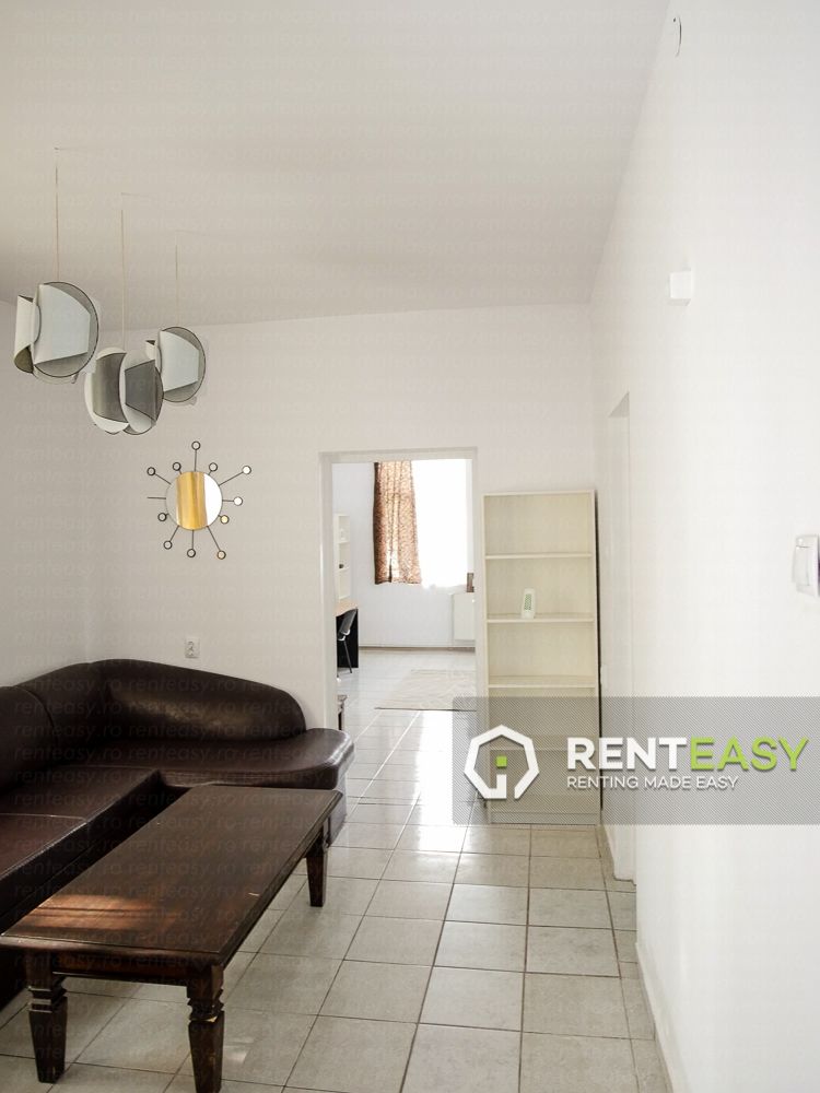 Apartament spatios cu 2 camere de inchiriat in zona Centrala. Apartamentul dispune de centrala termica proprie, a fost renovat si este in curs de mobilare. Disponibil pentru pretul de 350 Euro/luna.