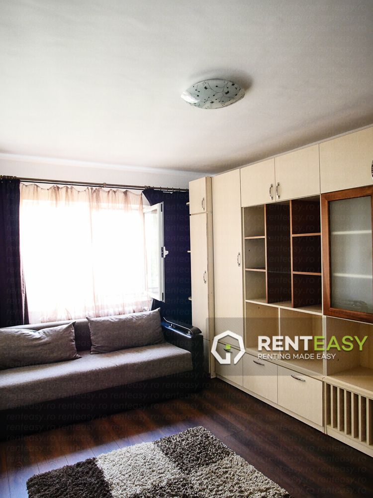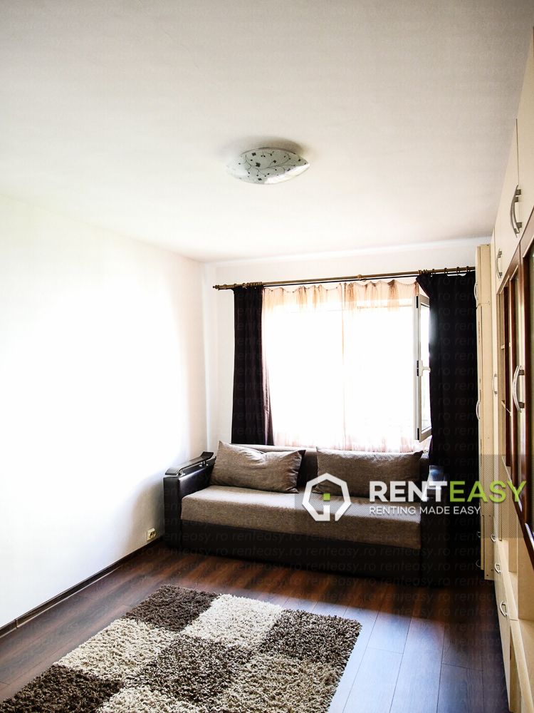This 2-rooms apartment located in Podul de Fier can be rented with 350 euro / month and you will enjoy everything you see in the photos: a fully furnished and equipped home with everything you need, equipped with its own central heating, bathroom window, storage space.