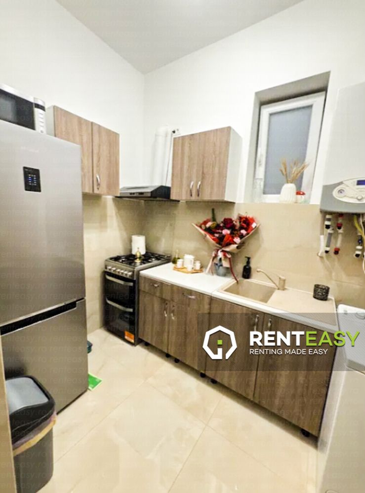 Apartament cu două camere de închiriat în zona Copou – Stadion, complet mobilat și utilat, situat la parter, dotat cu centrală termică. Preț: 600 euro/lună.