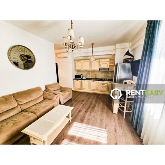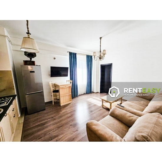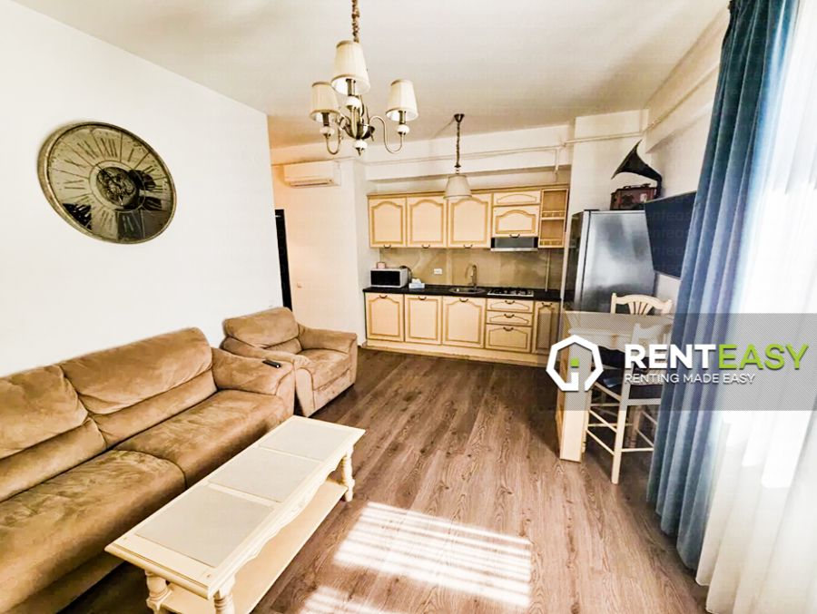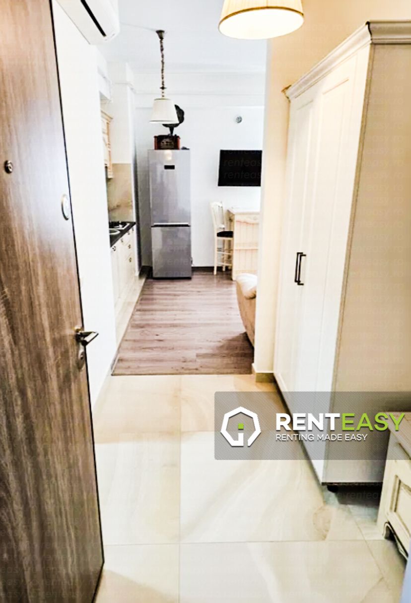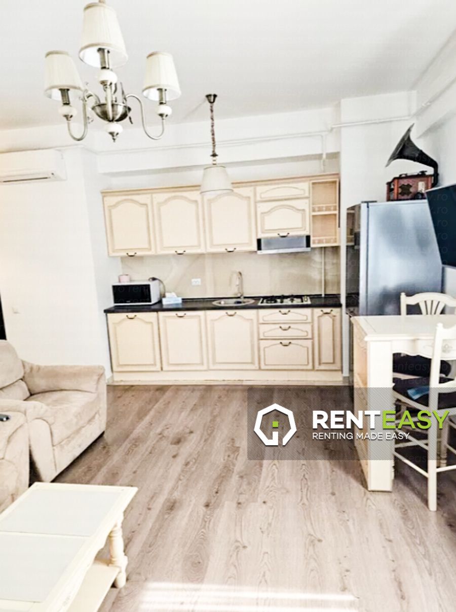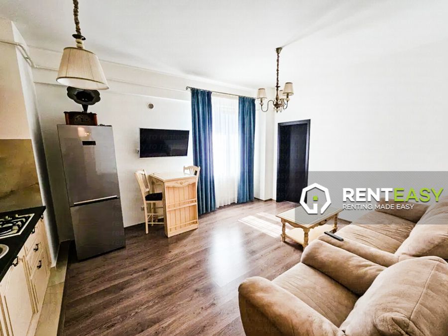 Apartament cu 2 camere de închiriat, situat în cadrul complexului Palas – Lazar Residence, la etajul 8. Locuința are o compartimentare open space, ce oferă un spațiu modern, luminos și eficient organizat. Se închiriază complet mobilată și utilată.Apartamentul este dotat cu balcon, centrală termică proprie și aer condiționat, asigurând un ambient plăcut în orice sezon. Preț: 430 euro/lună.
