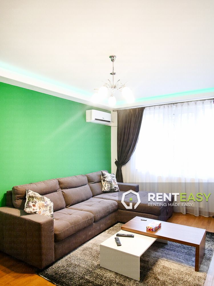 It is located downtown, Piata Unirii and looks exactly the way you see it in the pictures. It is composed of 2 rooms, fully furnished and equipped, with its own central heating and located on an intermediate floor. The apartment is up for rent with 700 Euro / month.