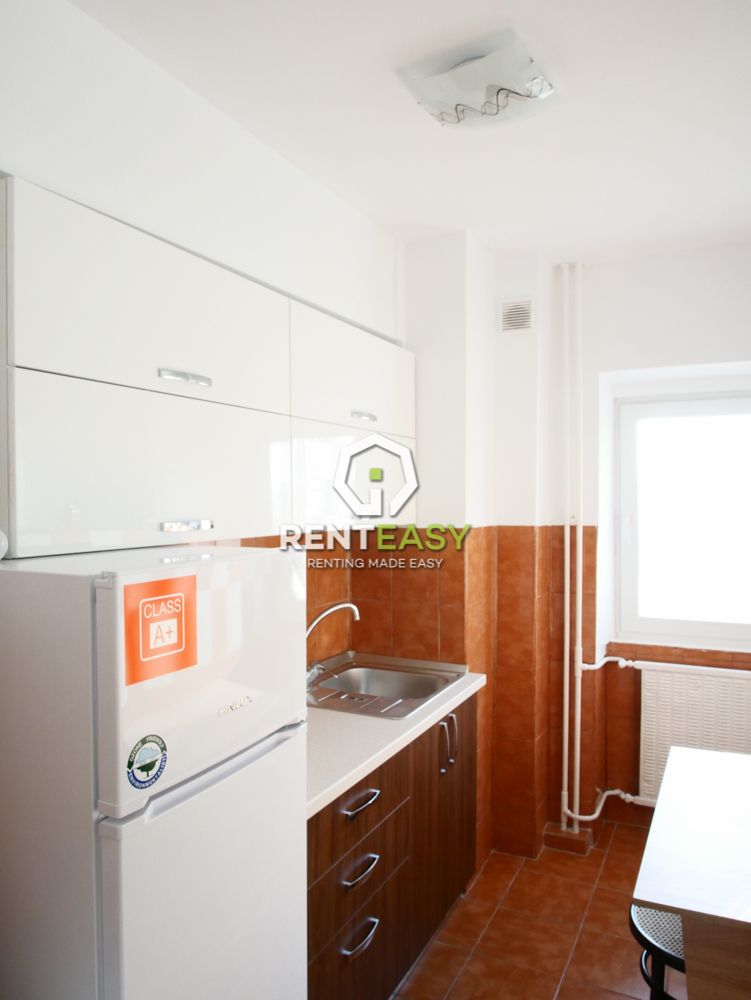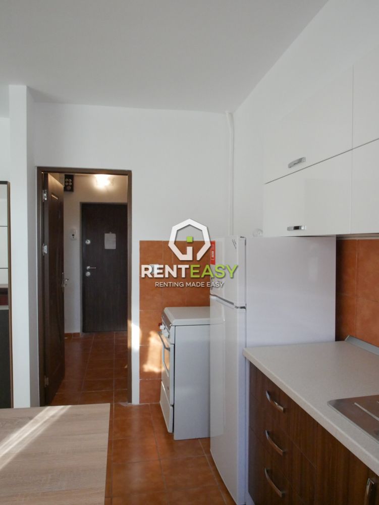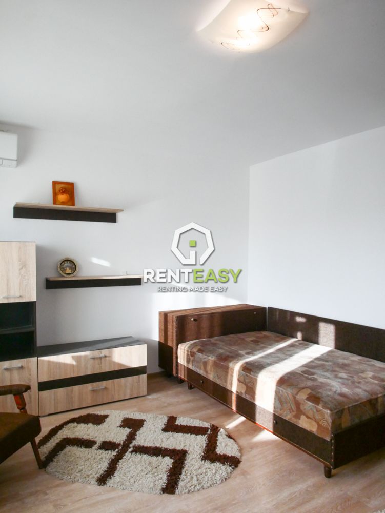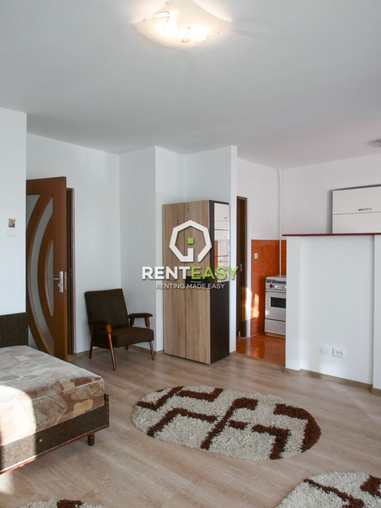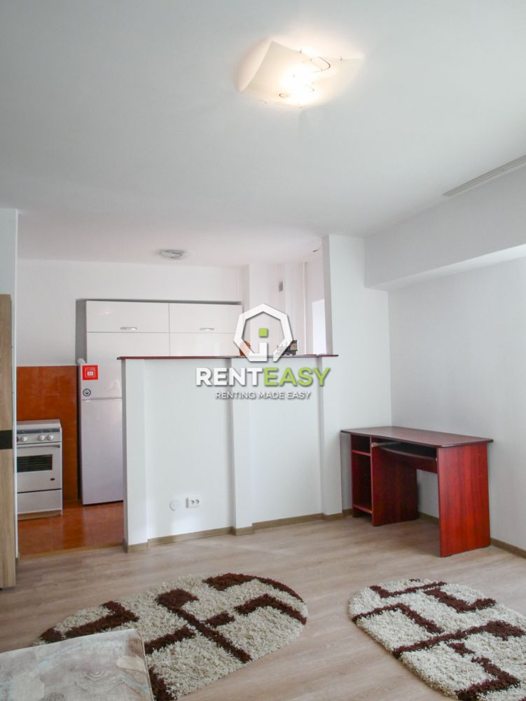 Apartament cu o camera de tip studio pentru inchiriat in Iasi intr-o zona linistita, cartierul Pacurari, vis-a-vis de Kaulfland. Apartamentul este situata la un etaj intermediar si este compusa dintr-un dormitor cu bucatarie tip open space cu doua intrari, balcon inchis si baie.
