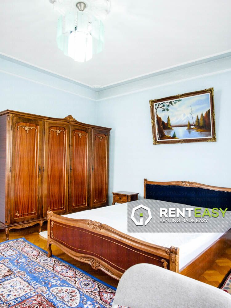 Cameră de închiriat în zona Centrală – UMF, complet mobilată, într-un imobil cu acces comun la living, bucătărie și curte. Preț: 380 €/lună.