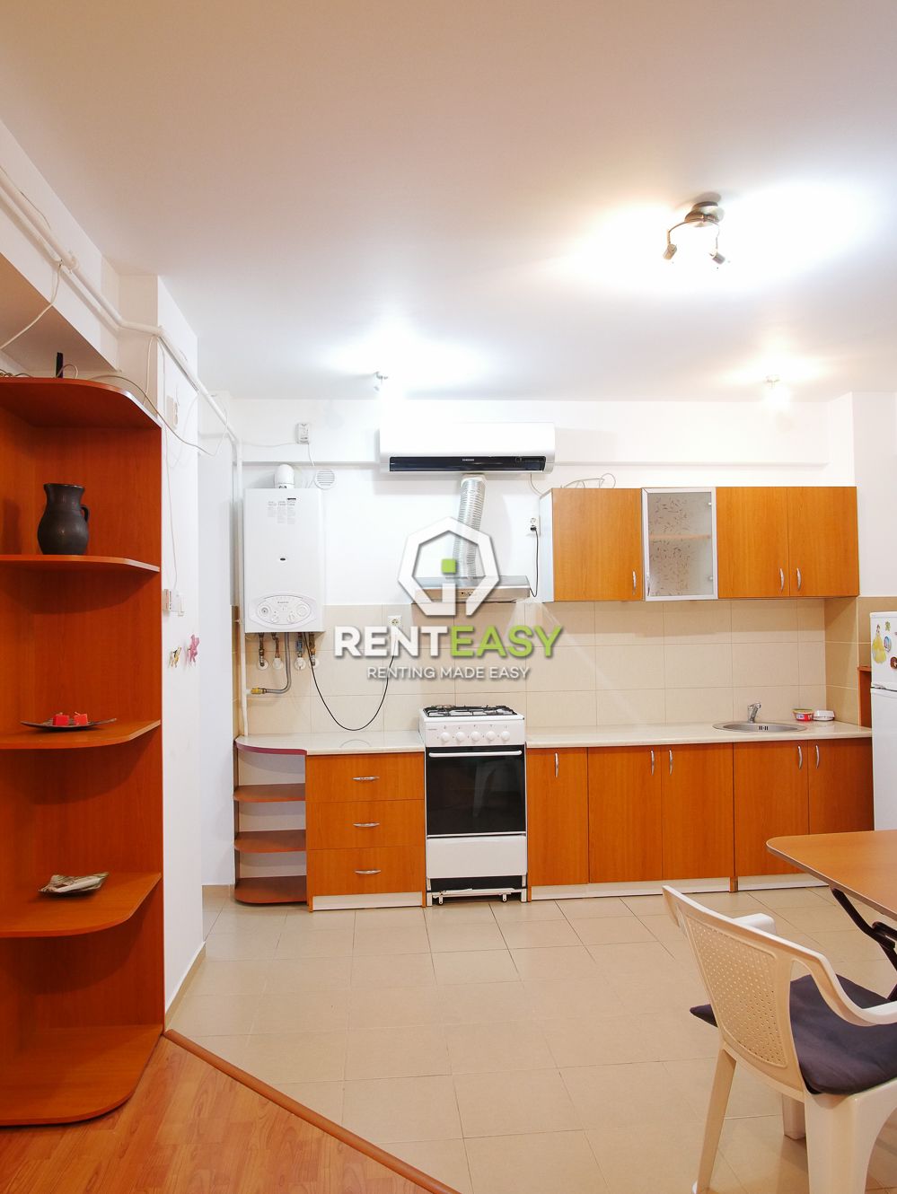 Agentia imobiliara RentEasy va prezinta un apartament cu 2 camere dat spre inchiriere situat in Tatarasi, complex Penta. Apartametul este situat la parter, are o suprafata de 50 mp, si este alcatuit din o camera de zi de tip open space cu bucataria, un dormitor cu pat matrimonial, balcon, hol, baie.